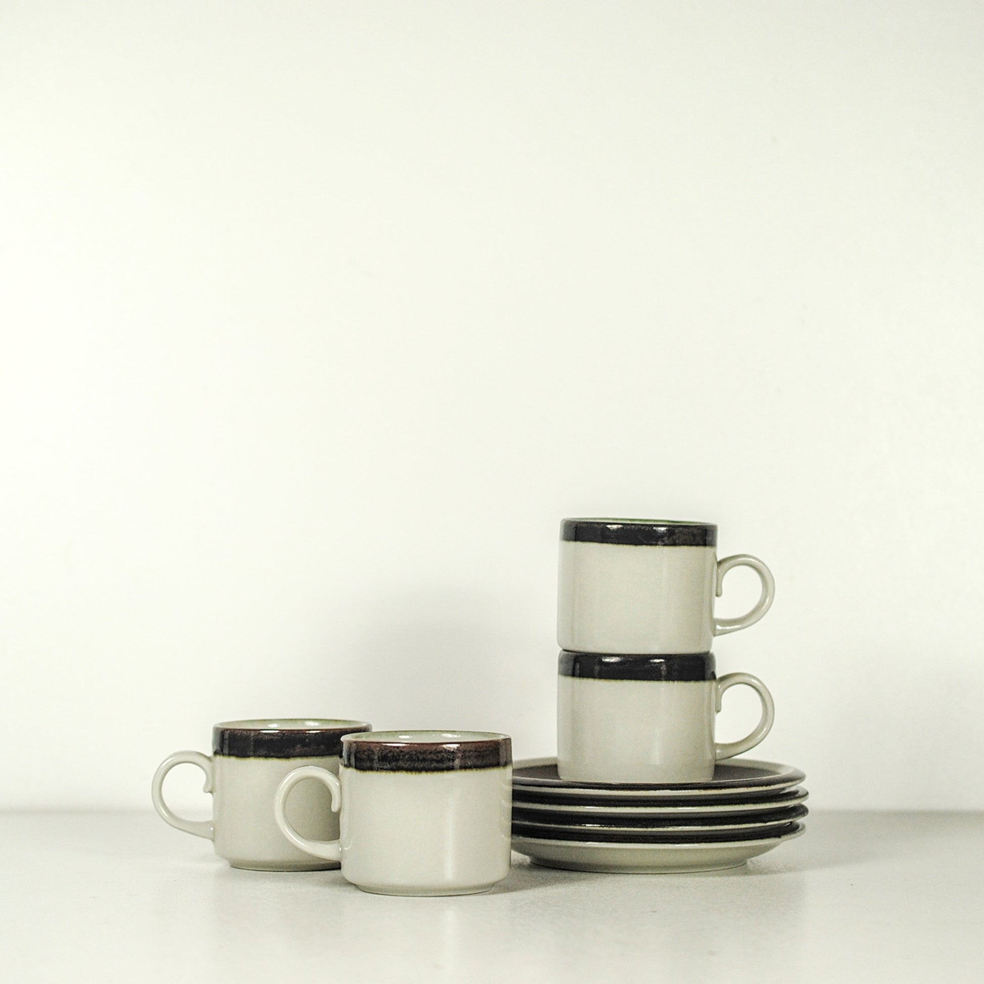 Set van 4 espresso kop&schotel sets uit de Karelia lijn van het Finse Arabia.