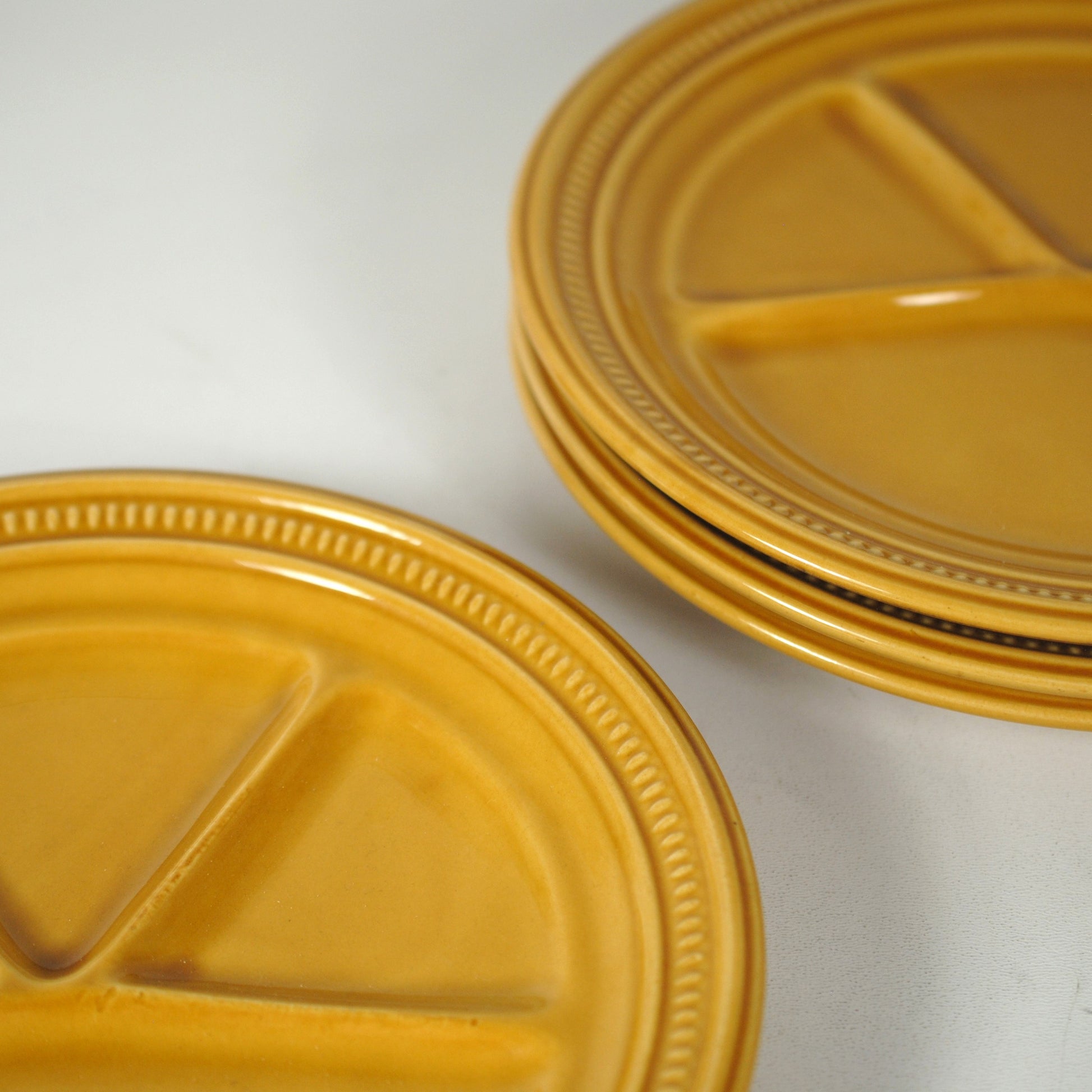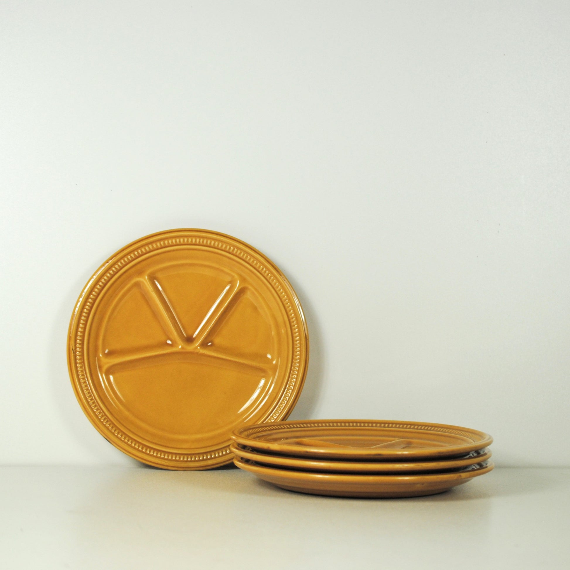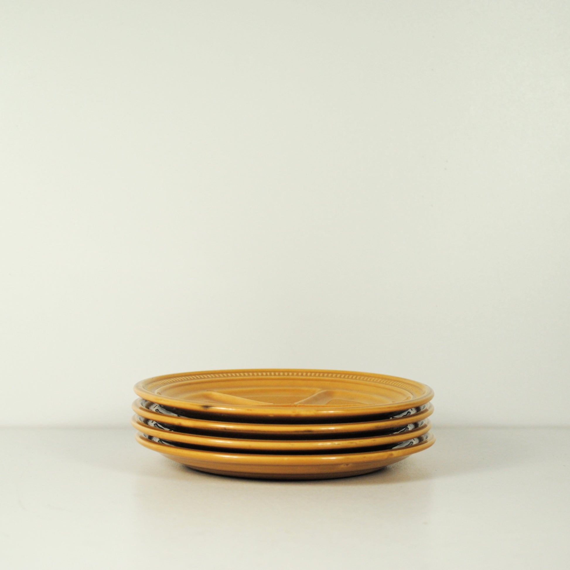 Set van 4 vintage fondueborden. De vakjesborden zijn ideaal bij het fonduen of voor het serveren van verschillende hapjes, fruit of noten.