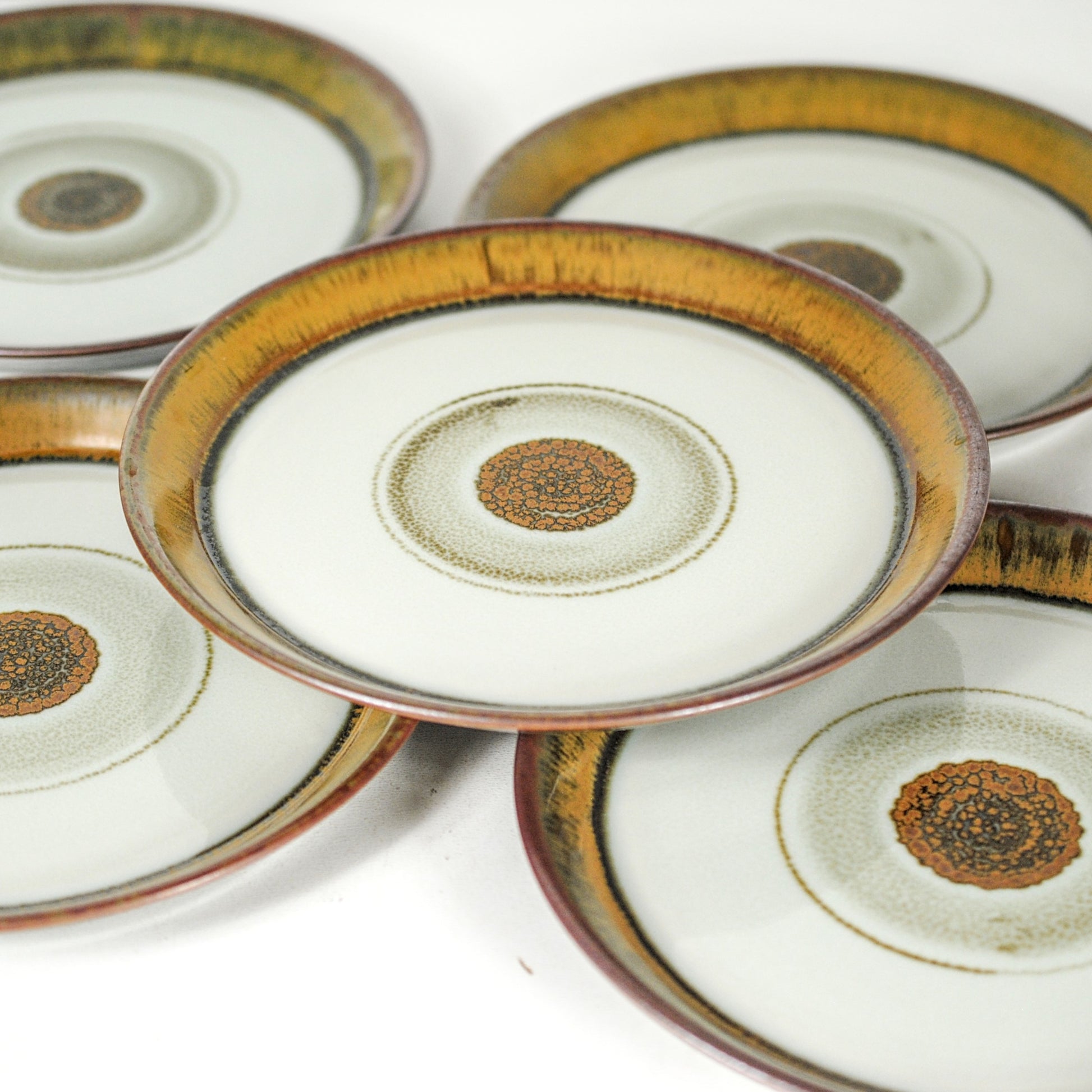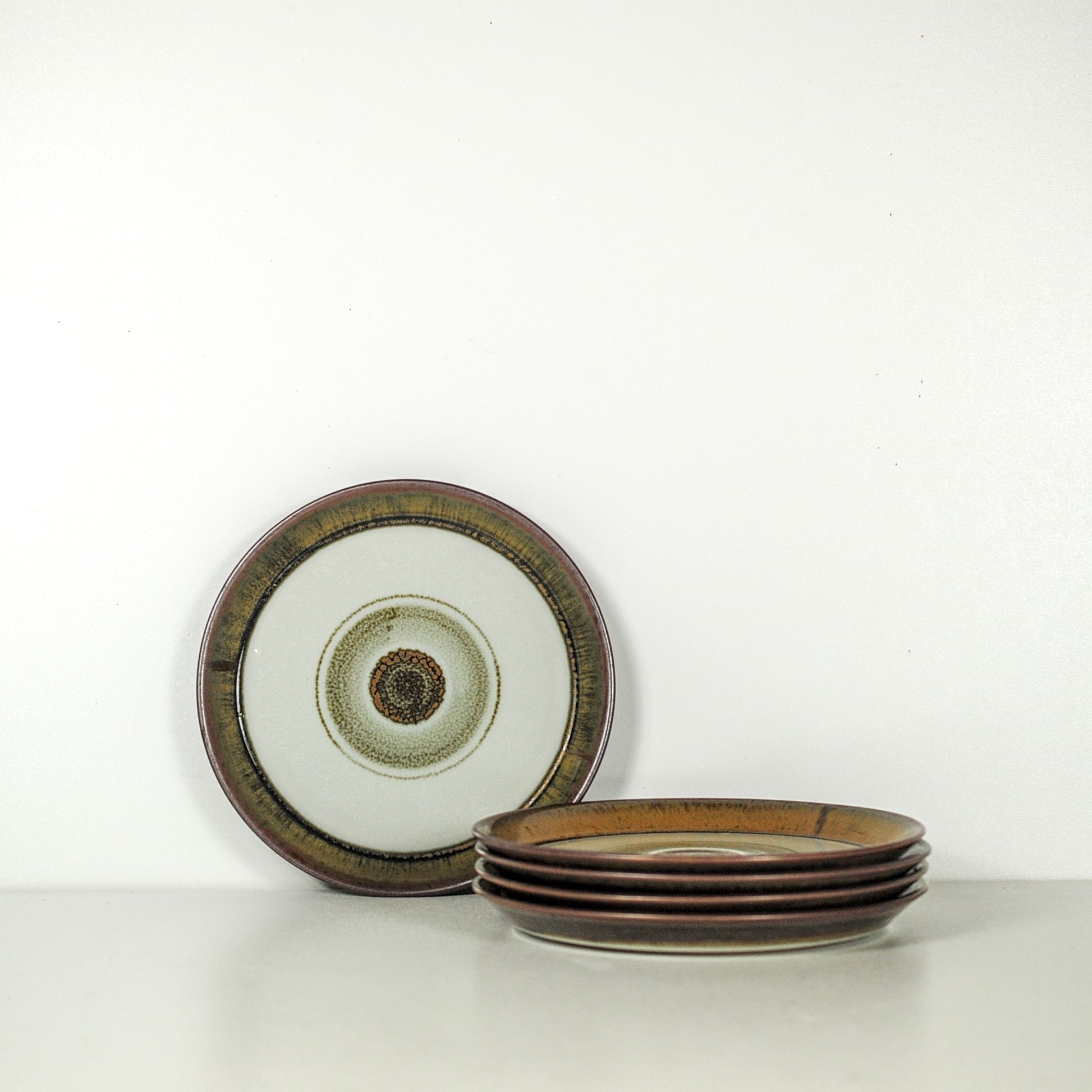 Set van 5 ontbijtborden uit de 'Diskos'-lijn van het Deense Desiree Denmark. De borden hebben een opstaande rand.